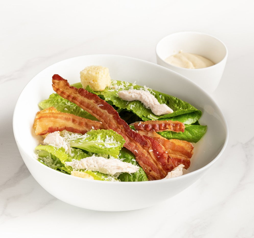 로메인 상추, 파마산 치즈, 크루통, 베이컨, 시저 드레싱